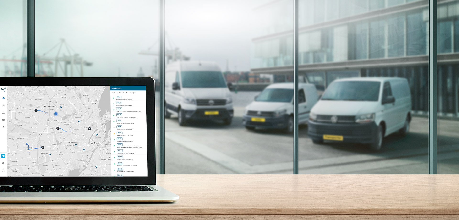Real-time status på dine bilers tilstand og placering. Med få klik ved du altid, hvor dine biler befinder sig, og hvordan de har det.
